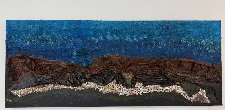 In this mixed media piece, I explored the ways life moves: sometimes rushing, sometimes still. With texture, depth, and fluid lines, the river becomes both a landscape and a metaphor. It carves, it carries, it reflects.